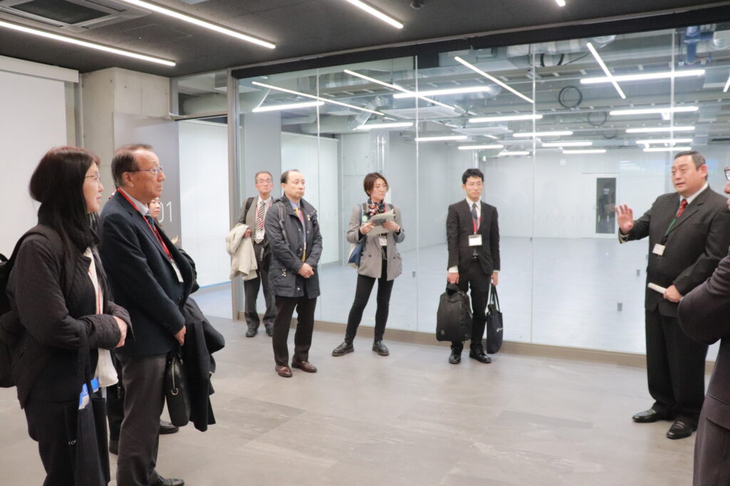 During the facility tour of the newly constructed research and education building called “Zero Emission Mirai Lab”, the participants were given explanations of the functions and roles of each room including future utilization plans for each. At the Hydrogen and Fuel Cell Nanomaterials Center, participants were also introduced to the cutting-edge research environments, including electron microscopes, automated experimental systems, and fuel cell evaluation devices whose installations are currently underway.
